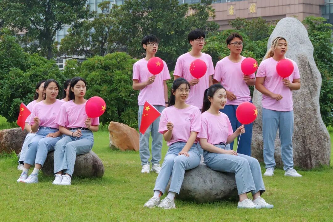 升国旗、与国旗同框、摆放主题景观小品……浙江科技学院的校园内一片红红火火,师生以多种形式欢庆节日。