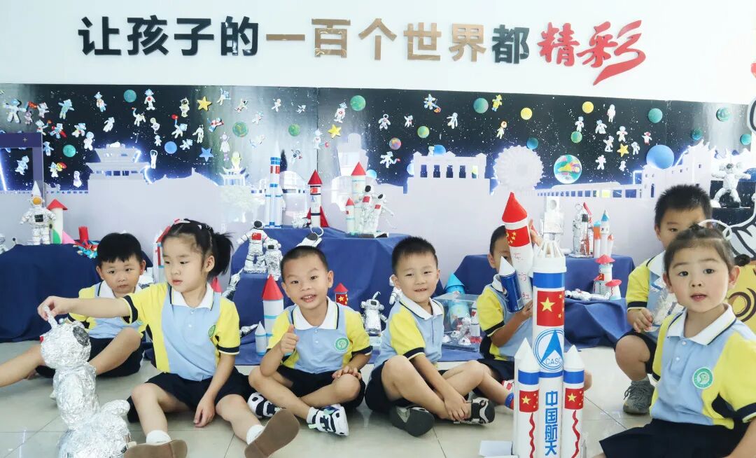 缙云县实验幼儿园的孩子们以航天航空为主线,开展“探秘太空,启航未来”创意活动,用粘土、纸筒、锡纸、KT板等材料绘制出梦想中的太空,用“中国梦、航天梦、我的梦”庆祝节日。