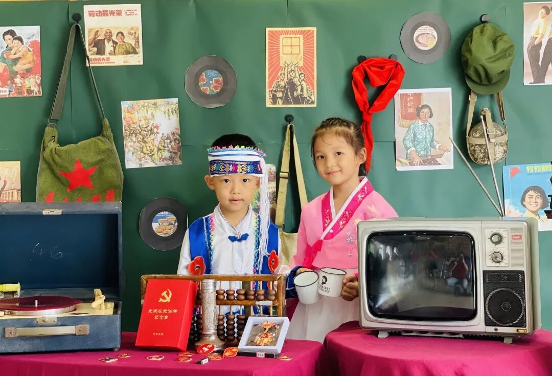 “回忆往昔、与党同行”,义乌市义亭镇中心幼儿园的孩子们身穿民族服饰,参观老物件展览馆,打卡幸福照相馆,在民族大联欢中近距离接触中华文化,传承红色基因。