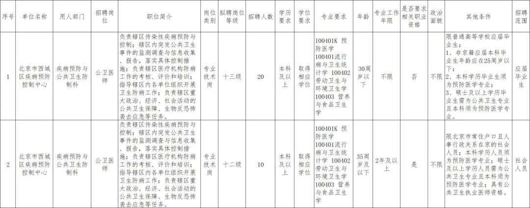 北京市西城区疾病预防控制中心面向社会公开招聘30人,主要岗位为:公卫医师。