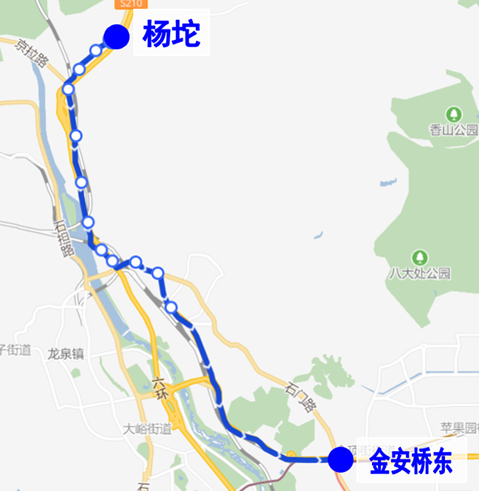 增设站位:新泰路口(开往石厂村方向)、西山燕庐家园、金地华宸小区、翡翠长安小区、梧桐苑北、玉带街、玉带街南口
