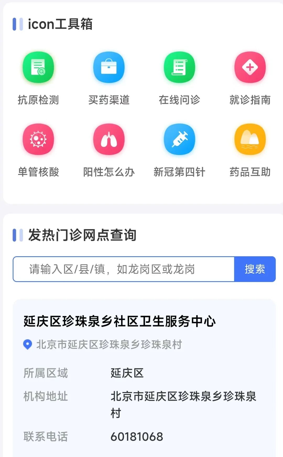 一键查询“发热门诊网点”
