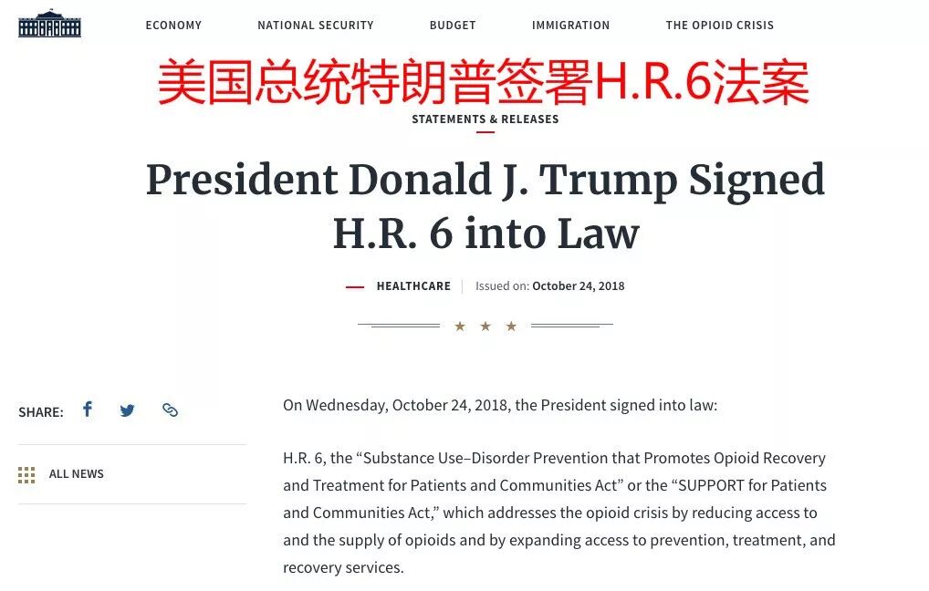 导读:白宫官网24日的一份公告:特朗普已签署了一项名为H.R.6的法案,其旨在寻找治疗疼痛的替代性药物和疗法,遏制阿片类止痛药物在美国泛滥。这项法案让不少美国网友兴奋不已。想知道到底发生了什么,请看下面视频↓↓