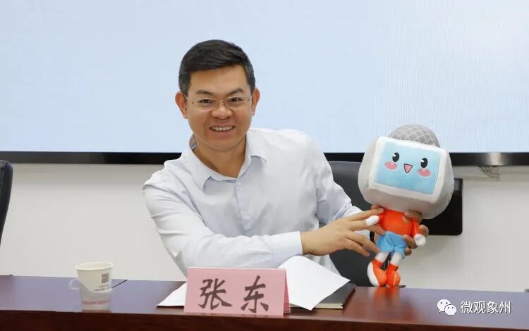 县委书记张东展示象州县融媒体中心“象小融”人设产品。