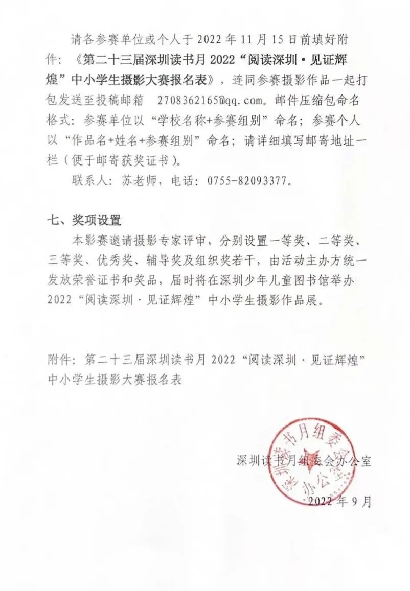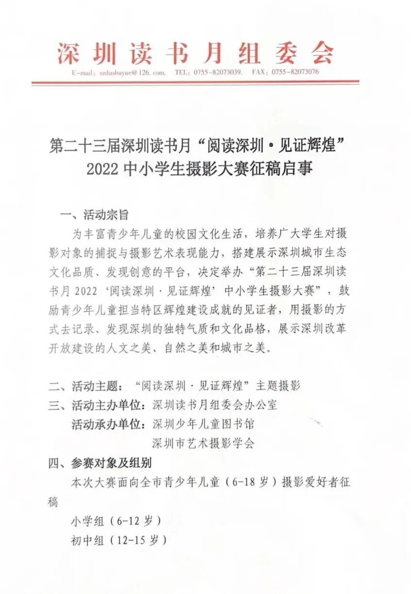 附件:第二十三届深圳读书月2022“阅读深圳·见证辉煌”中小学生摄影大赛报名表(文末阅读原文下载)