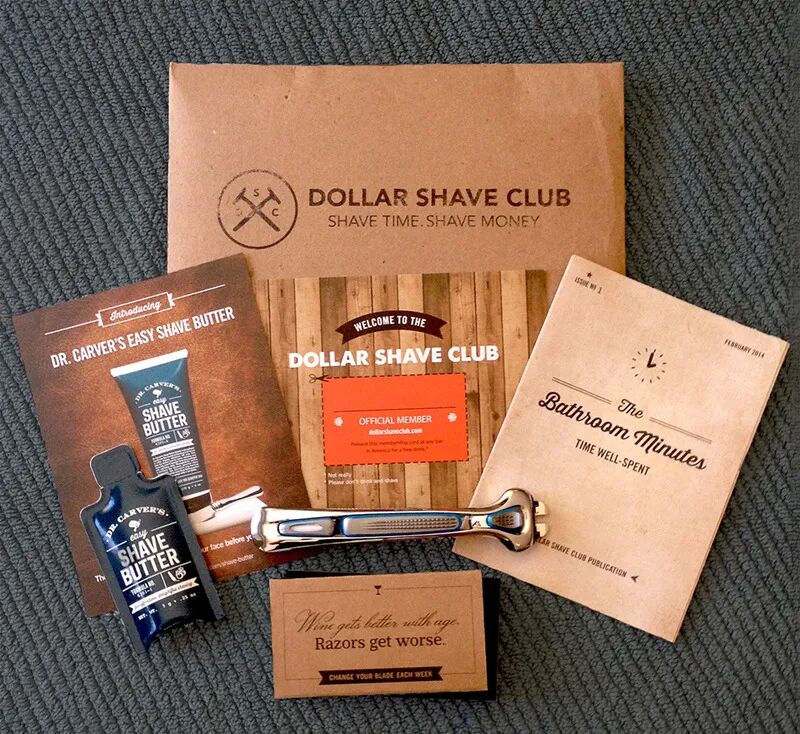 Dollar Shave Club每月为用户寄送5个剃须刀片的弹药补给,不仅省去用户线下购买的时间,同时保证用户每月都能使用刀干净卫生的刀片。