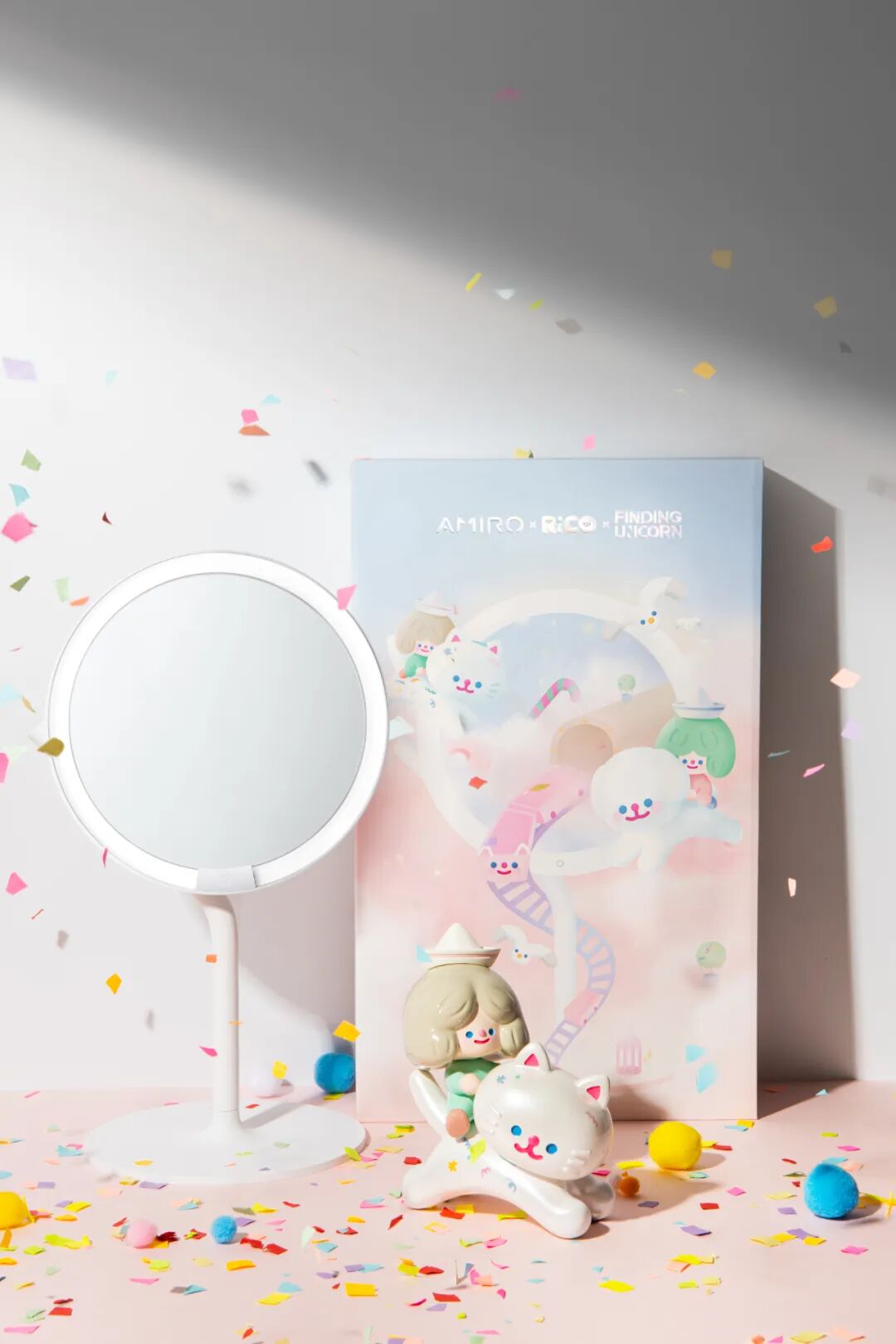 以去年 AMIRO 合作潮玩品牌 RICO 的“镜中乐园联名礼盒”为例。结合此前联名故宫的经验,AMIRO 发现,品牌目标用户的一大标签正是潮玩,而以 200 元价位左右的入门级美妆镜产品打造成潮玩礼盒,既具有功能性,又击中 Z 世代年轻群体的偏好,同时非常适合激活潜在消费者。
