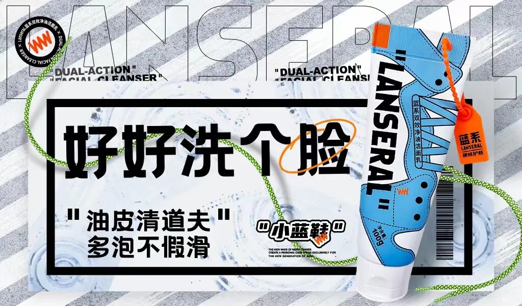 3、「蓝系LANSERAL」推出新品双效净油洁面乳
