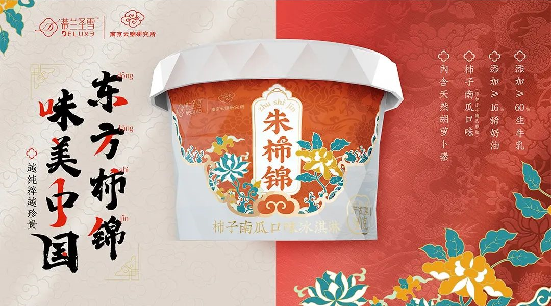蒙牛旗下「蒂兰圣雪」x 南京云锦研究所推出“朱柿锦”冰淇淋