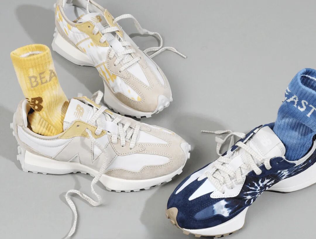 9 月 15 日,生活方式品牌「野兽派」宣布和运动鞋品牌「New Balance」推出联名限量 327 扎染系列。新品历时 2 年开发,将桂花乌龙香氛元素融入 327 运动鞋的设计中,有“蓝沉静”和“黄明媚”两款限定颜色。(官方微信)