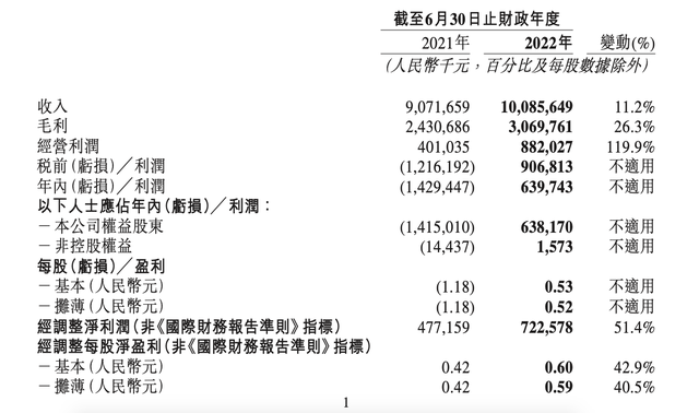 9 月 29 日,「名创优品」发布 2022 财年年报。截至 2022 年 6 月 30 日的一年内,公司营收 100.86 亿元人民币,同比增长 11.2%。公司权益股东应占净利润 6.38 亿元人民币,去年同期亏损为 14.2 亿元,扭亏为盈。(界面新闻)