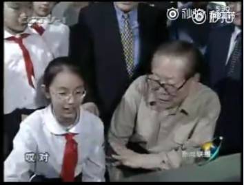 少先队员迫不及待向敬爱的长者展示成果。
