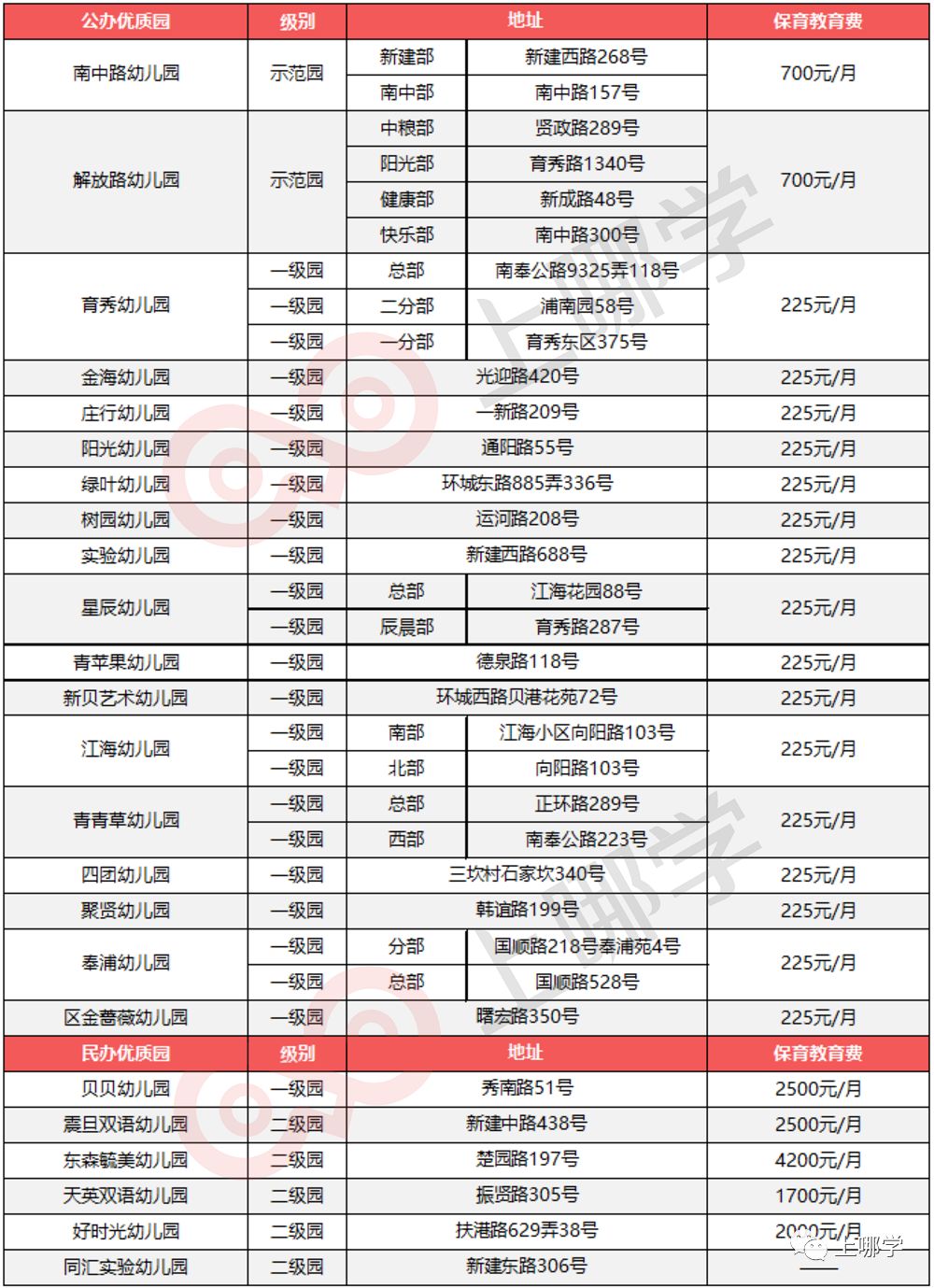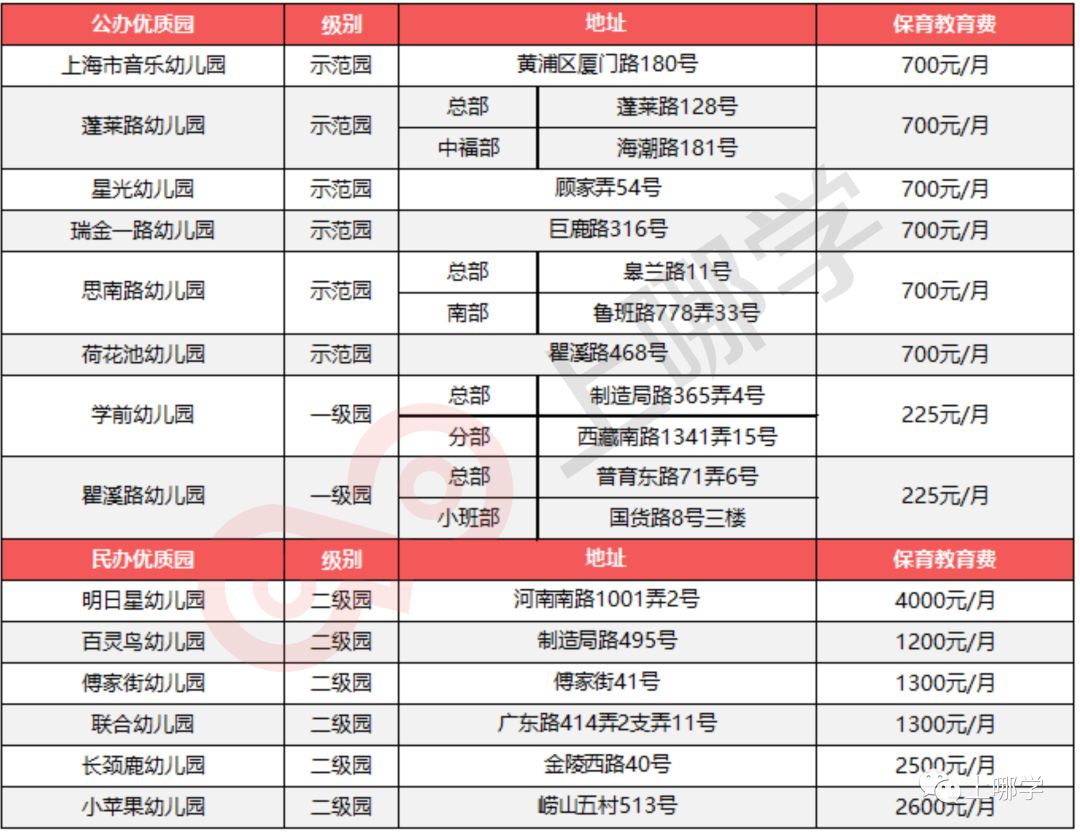 注:名单里幼儿园不分先后,级别综合参考各区教育局官网以及上海学前教育网数据,学费情况部分为去年的情况,仅供参考。