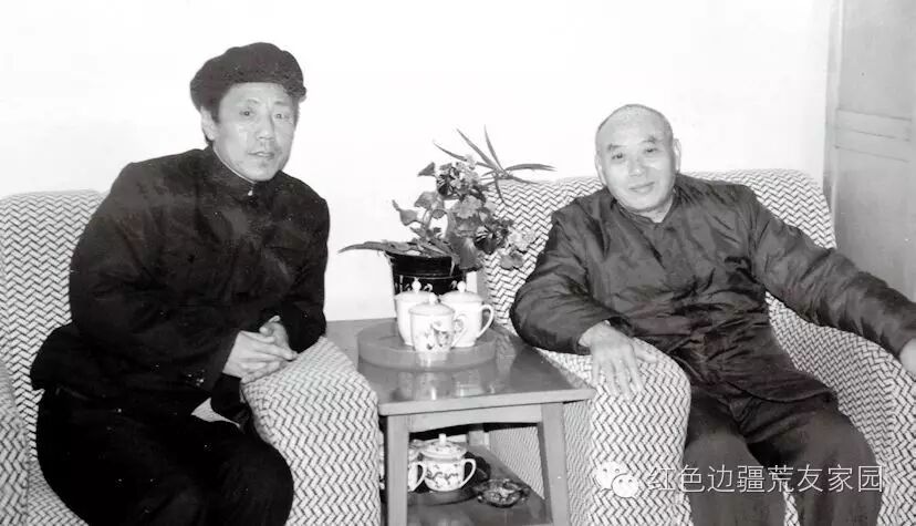 图7-7 1988 年5 月颜文斌在重返北大荒时,在佳木斯和已经转业的老秘书陈吉才重逢。兵团时期的8 年合作,让这两代人建立了深厚感情。2014 年4 月7 日,陈吉才代表兵团军人赴大连参加颜文斌追悼会,并于5 月5 日在《北大荒日报》发表了一篇纪念文章:《一位让北大荒人怀念的百岁将军》。