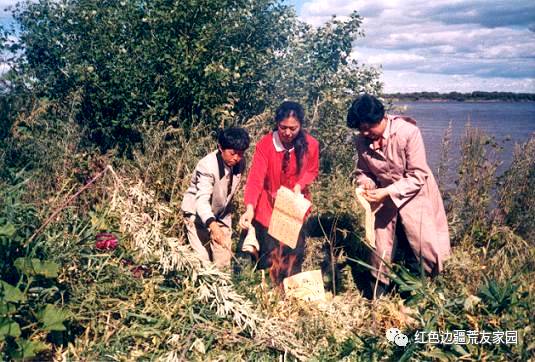1995年杨大丰回黑龙江在给姐妹们烧纸
