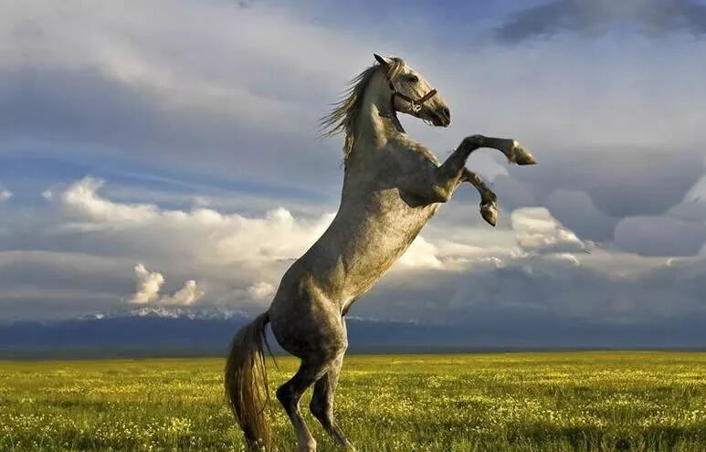 我拎着笼头走近它,“呼”的一声,屁股就转过来了。真想踢主人啦!四年来,作为我的座骑,我深知它的习性,于是一面毫不躲闪地跟着它转,一面轻轻地把笼头送向它的脸旁。青马迟疑地拿嘴碰了一下笼头,又惊惶地闪向一边,我耐心地再送过去。这回,它抽动着鼻子,闻了半天,终于将脑袋伸进去了。