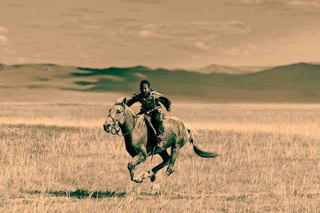 抽完烟,门吉儿站起来说到:“怎么样?兄弟们,上马吧!”“扎”的一声,大家都站了起来,仔细地整理着鞍子。我把前肚带略微放松了一点,让青马的呼吸畅快些吧!