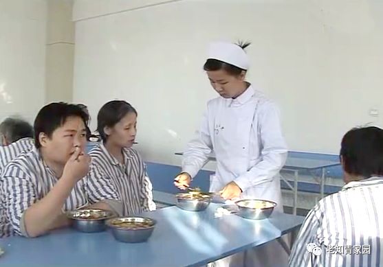 这是吃午饭的时间。每人两个馒头,也有的一个馒头,一大碗土豆炖牛肉。有一个患者要三个馒头,护理员说:别多吃,忘了上次你偷吃四个馒头,又吐又呕,折腾了大半天哪,就吃两个吧,嗷。说话的语气像幼儿园的老师。