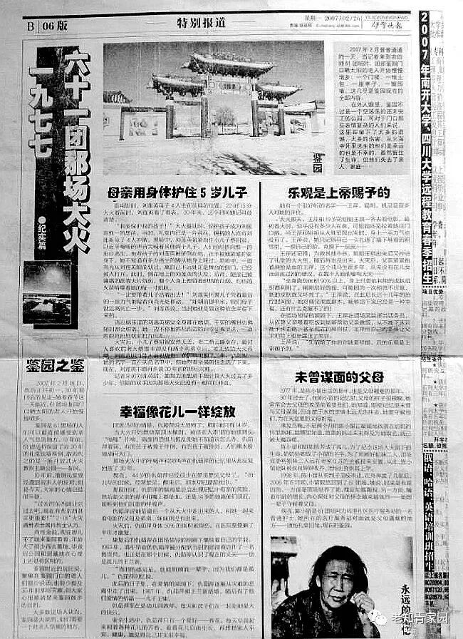 “整个学校感觉一下子空了,原本拥挤的校园冷清了!”胡佐国回忆当年春季开学的情景时,长久地叹息。胡佐国说,团场子校是中小学合校,有近1600名学生。火灾中,该校有500余名学生失去了生命。
