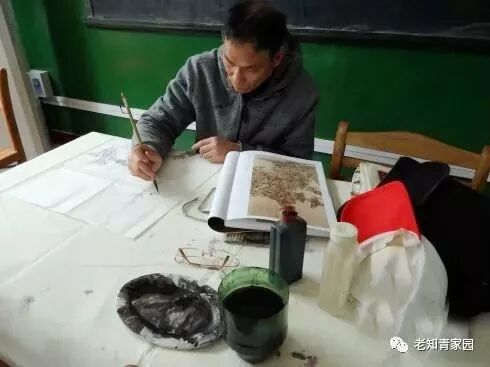 离岗归家雪鬓翁,闲来习画绘丹青。