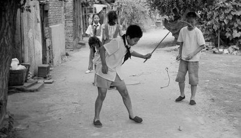 50年代孩子们的玩具和现在比,那是天壤之别,他们的玩具很 有限,不像现在的孩子一整就是半屋子。男娃无非是缠着布条的木 杆红缨枪,涂着银漆的木刀,螺丝母镶钢珠的小陀螺,用鸡翎或狗 尾毛和古铜钱扎的毽子,比较高档的有支铁皮制作能装砸炮的小手 枪,有几本或一箱小人书的,那都是向玩伴炫耀或交换某种利益的 资本。女孩则是跳皮筋的松紧带,猪羊狍子腿骨中的嘎啦哈和用碎 布缝制的小花口袋,铁丝编织的小花篮以及小皮球,还有巧手妈妈 做的布娃娃就很奢侈了。