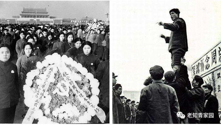 1976年4月5日清明节,北京近百万群众连续几天到天安门广场献花圈,诵诗词,悼念周恩来,声讨“四人帮”。