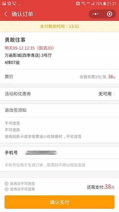 6. 根据个人意愿,选择观影影院、时间