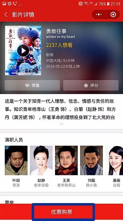 5. 点击底部的“优惠购票"