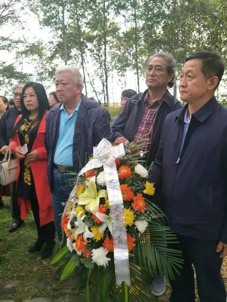 在原黑龙江生产建设兵团35团,现庆丰农场11.7扑灭荒火因公牺牲人员墓地,原黑龙江生产建设兵团42团下乡的上海知青方国平,原黑龙江生产建设兵团35团下乡知青张建民,康寿老年服务中心主任朱国民,代表前来参加北大荒知青书馆开馆系列活动的知青荒友和嘉宾,满怀对已逝战友的深切怀念,敬献上了花圈。