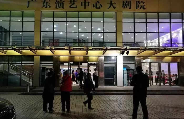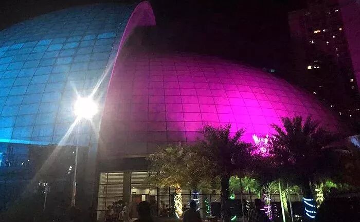 ▼广东演艺中心今天成了粤海知青欢聚的殿堂,在夜幕下映射异彩。