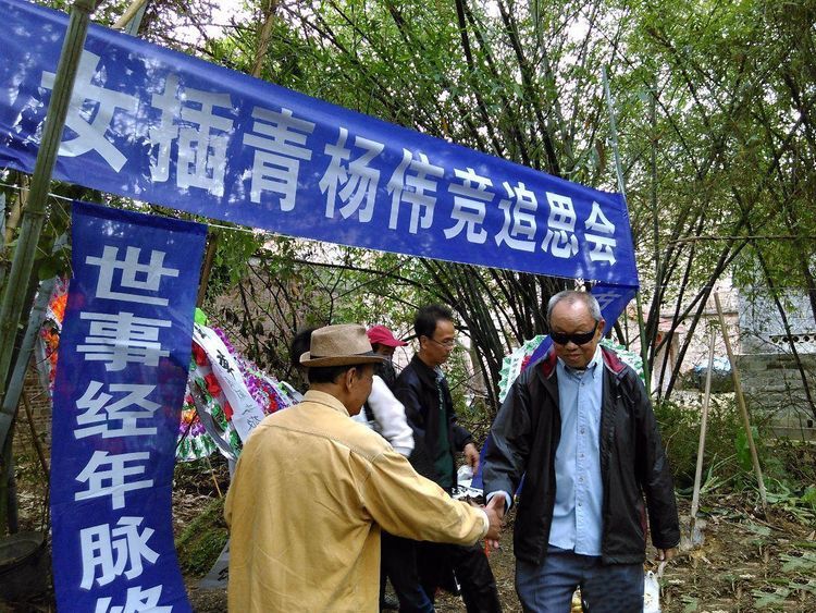 2017年4月19 日玉林知青联谊会在微信群里 发出有关举行杨伟竞追思会公告后,引起老知青们的积极关注, 4月27日终于能在杨伟竞的长眠之地——玉林福绵水岭小屋岭坡举办了公开的迟来的知青杨伟竞的追思会。