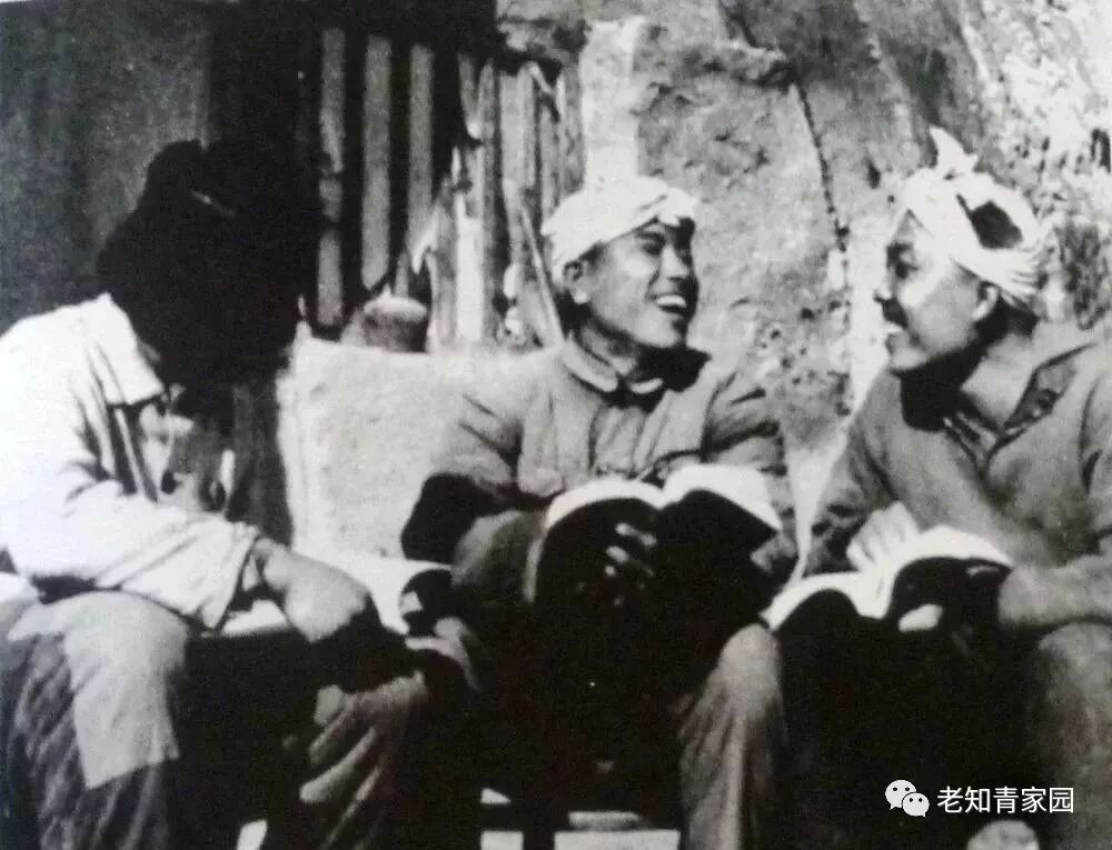 左起:宜川县新市河公社长命大队插队的刘丹华、于春魁、高冰正在阅读《毛泽东选集》。(刘丹华供图)