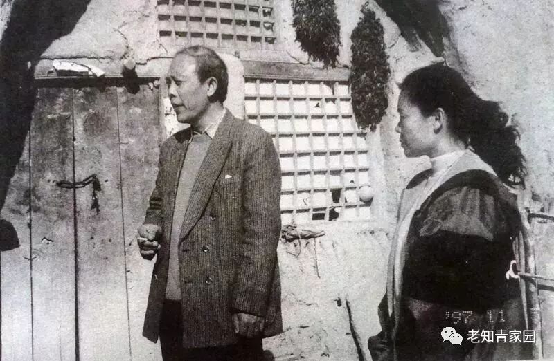 1997年11月5日。我和明晓艳在秋雨生前住过的窑洞前与乡亲们共话桑麻。这窑现在是烈烈家的粮仓。(王建勋图文)