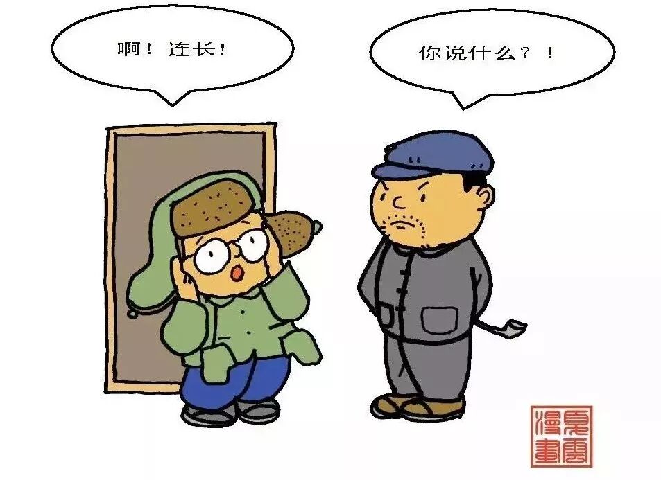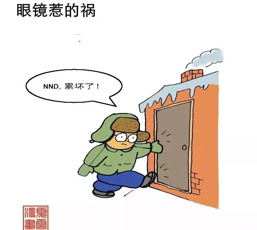戴眼镜的人在东北有诸多麻烦,尤其在冬天,屋里屋外温差大,从冰天雪地的外面进到屋内,眼镜上立刻被蒙上厚厚的雾气,就像被蒙上眼罩一样,因此戴眼镜的人冬天进屋的第一件事情就是擦眼镜。此君干了一天的重活,一肚子火没处发,进屋后一边擦眼镜上的雾气,一边骂骂咧咧的骂连长,戴上眼镜一看,呵呵,竟然连长就在眼前,这让他尴尬不已!