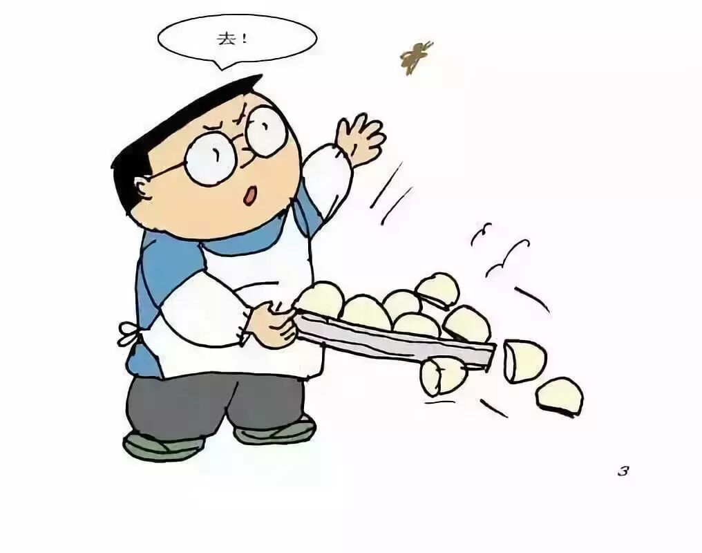 在东北,苍蝇是最可恶的,它漫天飞舞,毫无顾忌,打不散,赶不掉,“嗡嗡……嗡嗡……”烦不胜烦。对付苍蝇绝对不能冒失,否则往往会因小失大。你看此君,彭了一屉刚蒸好的馒头,为了赶一只苍蝇,竟然失手将馒头全部打翻了,太不值了!
