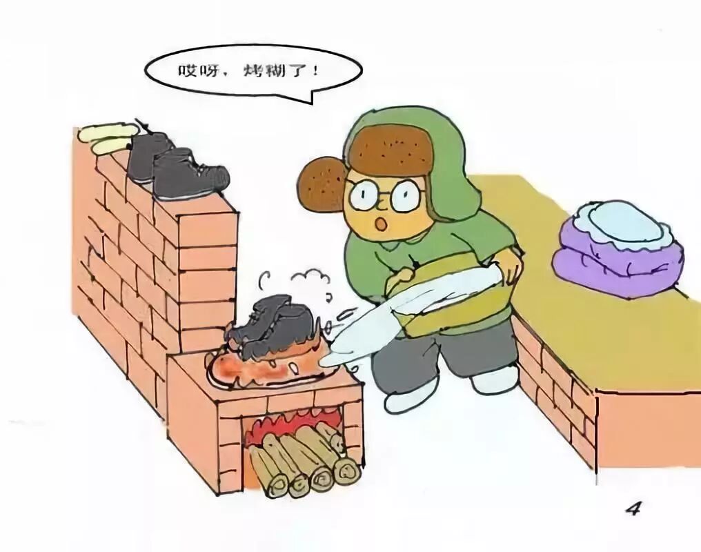 下乡期间,在东北冰天雪地干活,每天下工回宿舍,脱下鞋子一看,里面湿漉漉的,有时候还能倒出雪来。冬天外出,最关键的要保持鞋子暖和,于是许多人睡觉前都将自己的鞋子放在火墙上烤,当时宿舍里中间都砌着火墙,睡觉前火墙上堆满了鞋子、鞋垫,散发着臭气。好事之徒,为了保持室内温度,猛往炉膛里塞柴禾,结果暖了房子,烤糊了鞋子,屋内充满了烤焦的橡胶味……