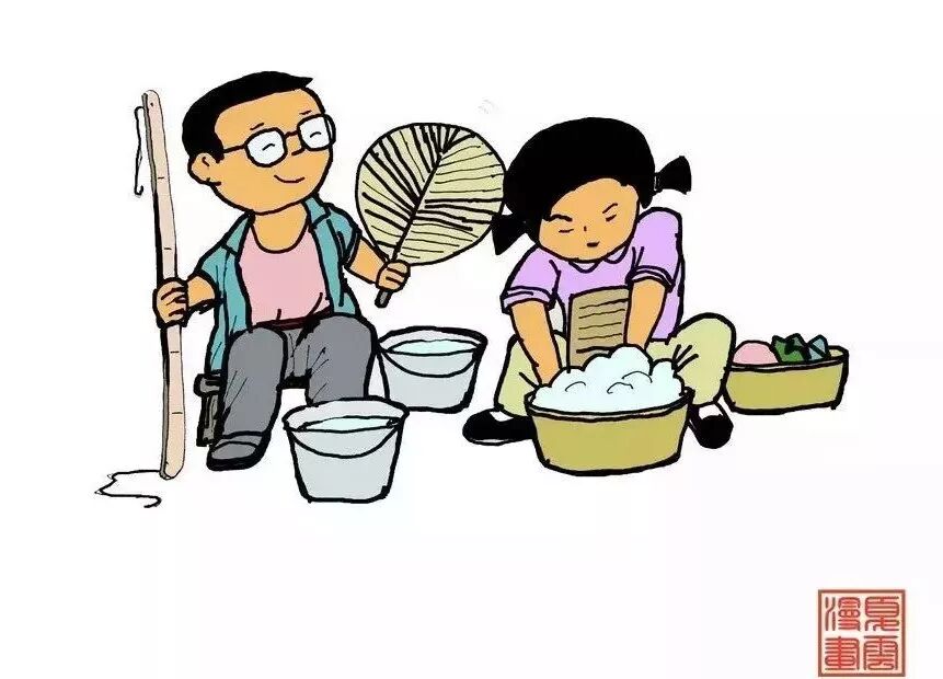 对男的来说,就比较简单了,一条宽大的裤子,一件汗衫或背心,一顶草帽,一条毛巾或裹在头上,或围在脖子山,这就是夏天装束的全部内容,有的干脆打赤膊,让全身晒得黑里透亮。