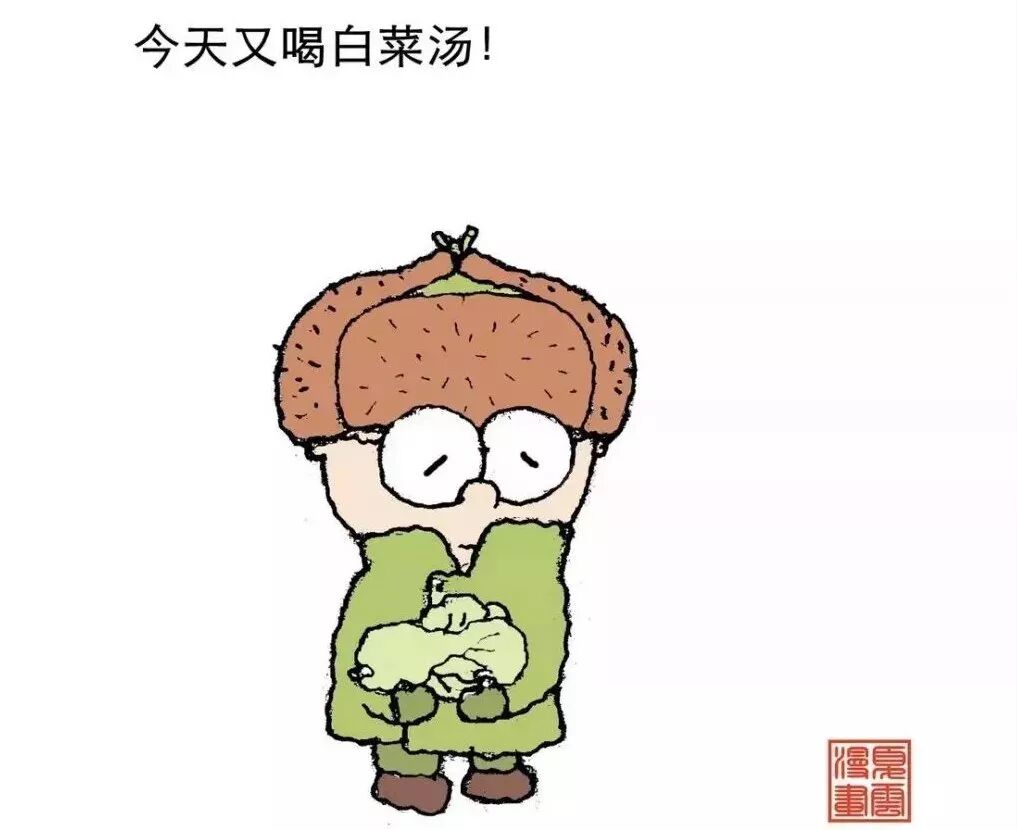 上山下乡的年代,物质极为匮乏,当年伙食除了过年能分到一些肉可吃外,其他时间基本上是闻不到荤腥味,尤其在冬天基本上是汤打底,白菜汤、土豆汤、萝卜汤,然后还是萝卜汤、土豆汤、白菜汤……这样周而复始,喝得人都要变汤了。