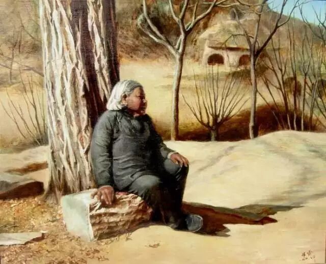 【画家日记】今天有大收获,发现一个新角,速写画了几笔,我就感动了,当时天近黄昏,一转眼不见了老人,走出窑发现她正一个人静静地坐在那棵老槐树下,面向村口大路,举目望着残阳从她侧后面方照射过来,她的脸影处在半明半暗之中,但那种期盼的神情仍清晰可辨,她身后的老树有种铁一样的质感,身下石头透出一种冰冷的气息,脚前撒落着几片枯黄的树叶……她在期盼什么呢?早先盼儿子放学归来,儿子去了大城市,盼儿子能回来看看她,可如今再也盼不来儿子的影子了,她已失去了盼头,也许她也不知道在盼望什么,但她仍是那样专注地望着村口……