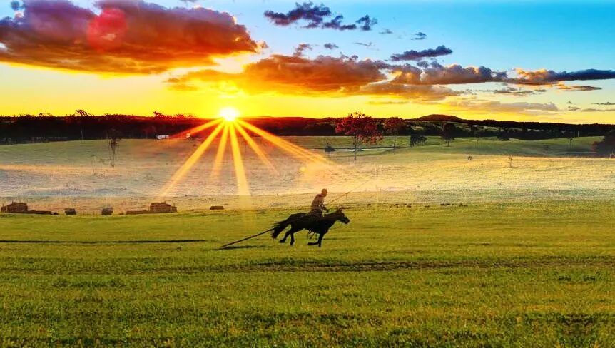 我们去开会的时候,往往天刚擦黑,凑合能辨别方向;散会时已然晚八九点,有时乌云遮月,有时天空一颗星星也瞧不见,漆黑到难见五指,似一口巨大无比的铁锅扣在脑瓜顶。这样的天气在草原稀松平常。我们根本不可能辨别方向,于是经常鬼打墙,骑马走半天,又转回到原地。