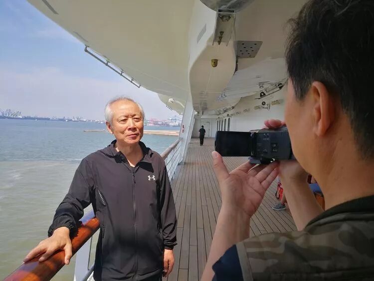 18日下午在甲板拍摄“快闪”,唱响"我和我的祖国"。共和国的同龄人与祖国风雨同舟!