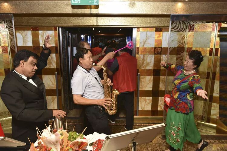 晚宴以接龙形式,跟随萨克斯音乐退场。