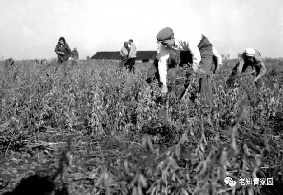 这每人 6 根垄,每垄 400 米的大豆,快手也要割到下午,我和几个伙伴在“打狼”梯队往前挪。每天下午,我们都是一条腿跪在地上往前割的。收工回宿舍,迈不动步,浑身散了架。