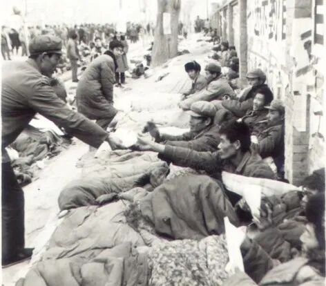 真冷啊!躺在地下的绝食者一个挤一个,一字排开,边上站着值班的纠察,坚守着岗位照顾着绝食者们。突然,马路上传来了摩托车的声音,从远到近。一个军用三轮摩托车停在我们绝食方向的前面,一位军官下车问纠察:“同志,上青总代表欧阳琏在哪里?我是军分区的,有紧急重要文件要交给他。”小和尚与我同时听见,就招手答应对方。“他在这里。”“我在这里。”