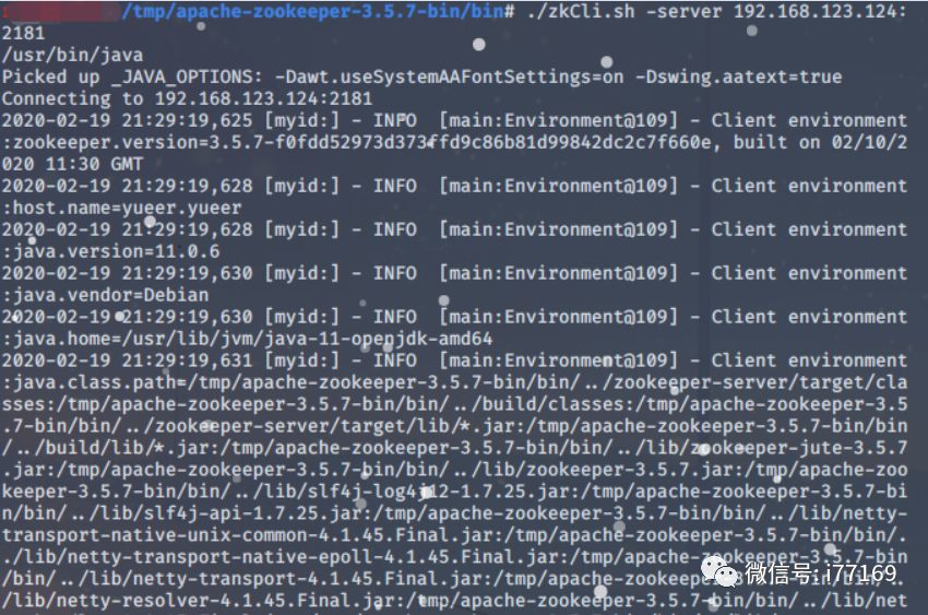 Zookeeper 的默认开放端口是2181。Zookeeper 安装部署之后默认情况下不需要任何身份验证,造成攻击者可以远程利用 Zookeeper,通过服务器收集敏感信息或者在 Zookeeper 集群内进行破坏(比如:kill命令)。攻击者能够执行所有只允许由管理员运行的命令。