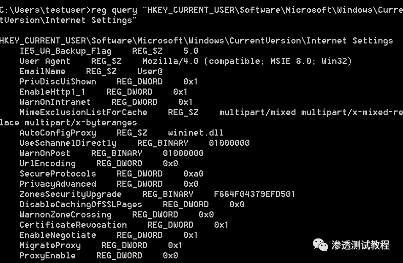 reg query "HKEY_CURRENT_USER\Software\Microsoft\Windows\CurrentVersion\Internet Settings"