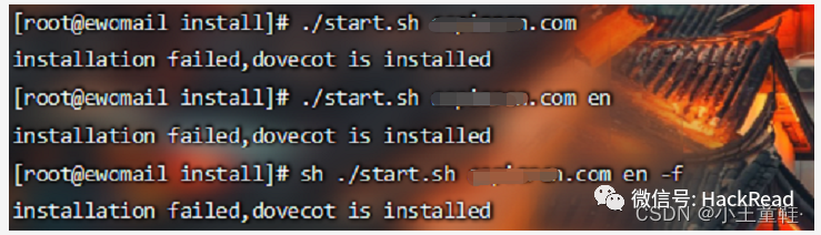 ps:如果在执行安装时报错 ewomail-lamp install failed 解决办法:./start.sh xxx.com -f