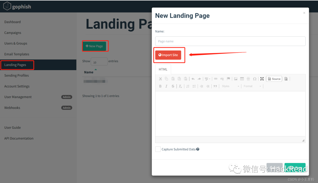 mip22功能刚刚简单介绍了,我主要是用它自带的网页,减少工作量,生成网页之后复制链接到gophish这里直接克隆一下,如图克隆好之后会出现在你的html框中,然后自定义改一些格式还有css,加一些表单也都可以,我这里不演示了,我们可以通过点击source来查看修改后的页面,这两个框记得打对勾,分别是抓取数据和抓取密码,这些抓取的数据最终都会出现在数据面板中![]()