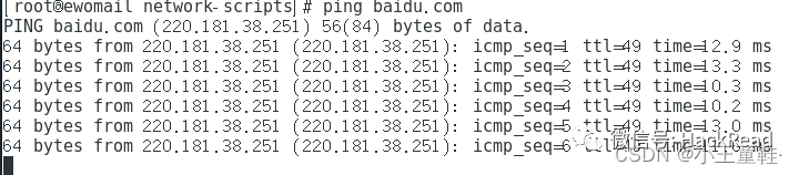 /修改之前建议保留一份原始配置,具体配置文件如下/TYPE="Ethernet"PROXY_METHOD="none"BROWSER_ONLY="no"BOOTPROTO="static"DEFROUTE="yes"IPV4_FAILURE_FATAL="no"IPV6INIT="yes"IPV6_AUTOCONF="yes"IPV6_DEFROUTE="yes"IPV6_FAILURE_FATAL="no"IPV6_ADDR_GEN_MODE="stable-privacy"NAME="ens33"UUID="1f39ba1e-e095-48dd-ab0e-81cf76f2103f"DEVICE="ens33"ONBOOT="yes"IPADDR=192.168.31.213 /*静态地址*/NETMASK=255.255.255.0GATEWAY=192.168.31.1 /*网关,即所使用的网卡地址*/DNS1=8.8.8.8ZONE=public~