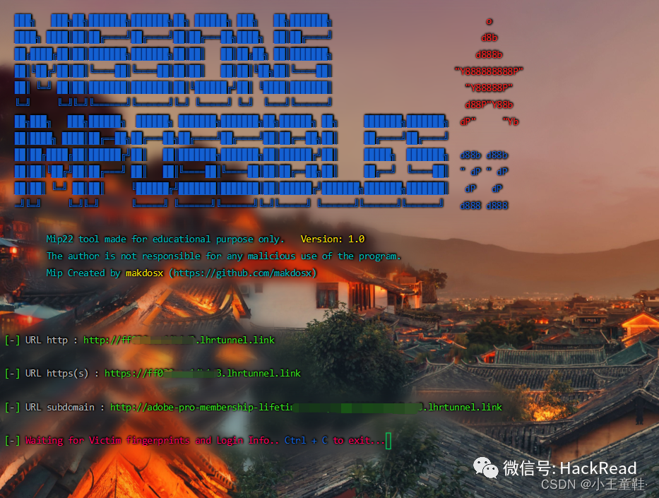 先简单介绍一下mip22这个工具,集钓鱼网页、邮件服务、隧道技术于一身,通过网页访问可以捕获不少东西,是一套完整的网页钓鱼工具,但是缺少一点图形化展示,数据结果不够直观,不适合做演练,也因为我菜(根本原因)。这里我们主要是用他的钓鱼页面,可以直接套进gophish使用。